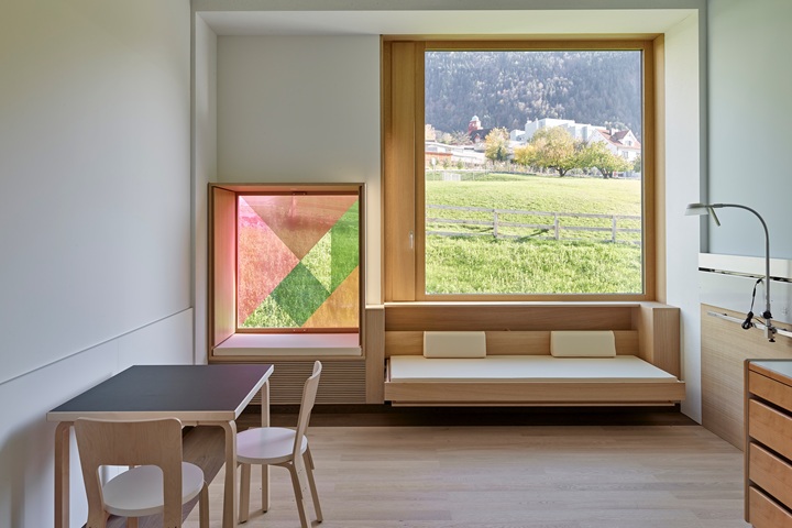 Beim neuen Bettenhaus für das Kinderspital Graubünden in Graubünden setzten Staufer & Hasler Architekten aus Frauenfeld auf die langlebige und strapazierfähige Oberflächenbeschichtung B-Protect® von Bauwerk Parkett