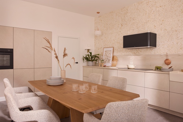In Zeiten, in denen Küchen homogene, offene Lebensräume sind, wachsen die Anforderungen an Gestaltung und Funktion gleichermaßen. Gleichzeitig gewinnen organische Formen im Küchendesign an Bedeutung. Die Curveline greift diese Entwicklung auf und fügt sich als bewusst gesetztes Gestaltungselement harmonisch in den Raum ein. Ihre sanft gerundeten Konturen und die reduzierte Formensprache verleihen ihr eine ruhige Präsenz innerhalb des Küchenkonzepts.