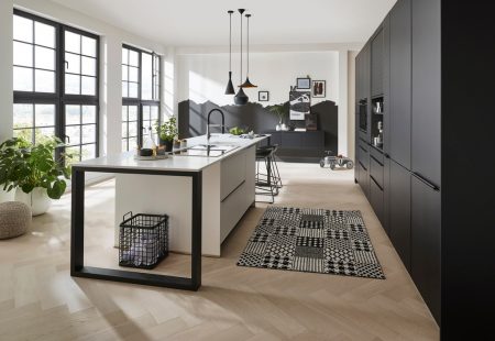 . Perfekt dazu: das gleiche Muster als Relief in der Küchenfront, bei dem je nach Blickwinkel interessante Effekte aus Licht und Schatten entstehen. Oder man lässt den Kontrast von Schwarz und Weiß auf großer Fläche wirken: Keramische Möbelfronten und Arbeitsplatten in Marmor- oder Steinoptik sind Style-Highlights in der Küche, denen selbst intensiver Gebrauch und häufige Reinigung nichts anhaben können. Eine Armatur in Anthracite setzt dazu einen starken Akzent