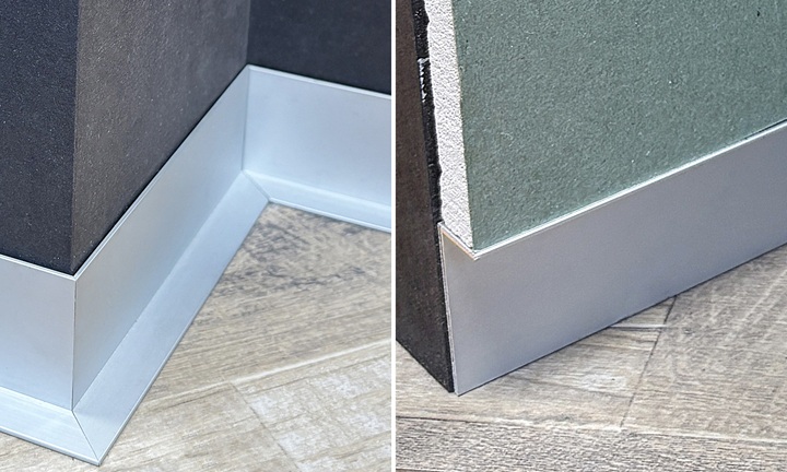 Die hochwertigen Aluminiumprofile ergänzen das umfangreiche Sockelsortiment und stellen zugleich eine durchdachte Lösung für wandgleiche Abschlüsse im Trockenbau dar. Sie lassen sich präzise verarbeiten, sind flexibel einsetzbar und zeichnen sich durch eine hohe gestalterische Wertigkeit aus.