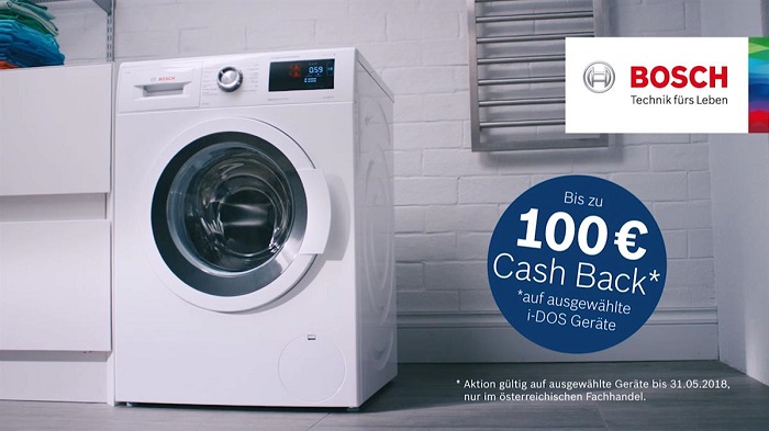 Aktuell sparen Kunden nicht nur Wasser und Waschmittel. Beim Kauf eines teilnehmenden i-DOS Gerätes bis 31. Mai 2018 dürfen Sie sich zusätzlich über einen Cash Back von bis zu 100 Euro freuen