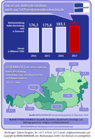 Der Herstellerumsatz mit Sonnenschutzsystemen zur Außenbeschattung wuchs im Jahr 2017 um 3,8 Prozent geg