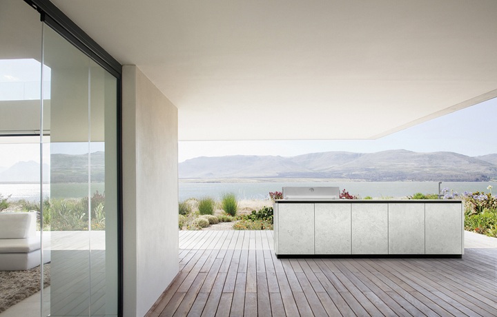 Outdoor-Küchen müssen Wind und Wetter trotzen und somit viel aushalten. Eine sehr hochwertige Neuheit kann das ganze Jahr über im Freien stehen. Sie vereint die Ästhetik und Funktion einer für den Innenbereich konstruierten und geplanten Einbauküche inklusive ihrer gesamten Innenorganisation mit den Vorzügen und der Widerstandsfähigkeit einer Outdoor-Küche. Spezielle Gummidichtungen und integrierte Drainagen schützen vor Niederschlag – und sollte die neue Outdoor-Schönheit in der Nähe des Meeres stehen, auch vor Salzwasser.