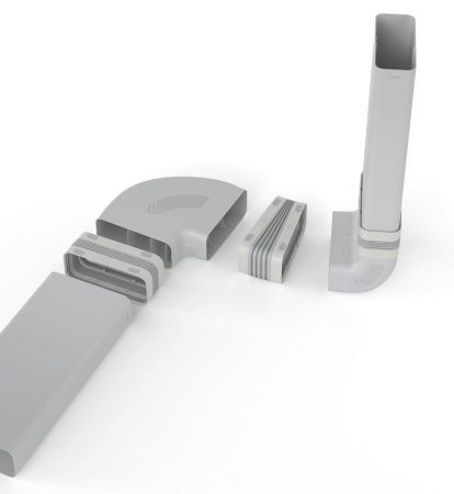 Das von Naber entwickelte aerodynamisch optimierte Leitungssystem COMPAIR PRIME flow® reduziert Luftwiderstände auf ein Minimum, sodass der Kochwrasen selbst über längere Strecken und in Kurven nahezu ohne Strömungsverluste abgeführt wird. In Kombination mit einem passenden wärmegedämmten Mauerkasten wird der Wrasen vollständig aus dem Gebäude geleitet – auch bei Kochinseln. Dank strömungsoptimierter Geometrien bleibt der Energieverbrauch kontrollierbar, Wärmeverluste werden minimiert.