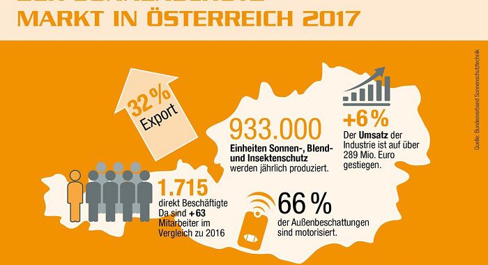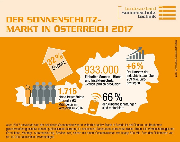 Die Marktzahlen der österreichischen Sonnenschutzindustrie spiegeln die positive Stimmung wieder. So weist der Umsatz der Branche einen Zuwachs von knapp 6% auf und gegenüber 2016 stellten die Mitgliedsbetriebe fast doppelt soviele Mitarbeiter neu ein