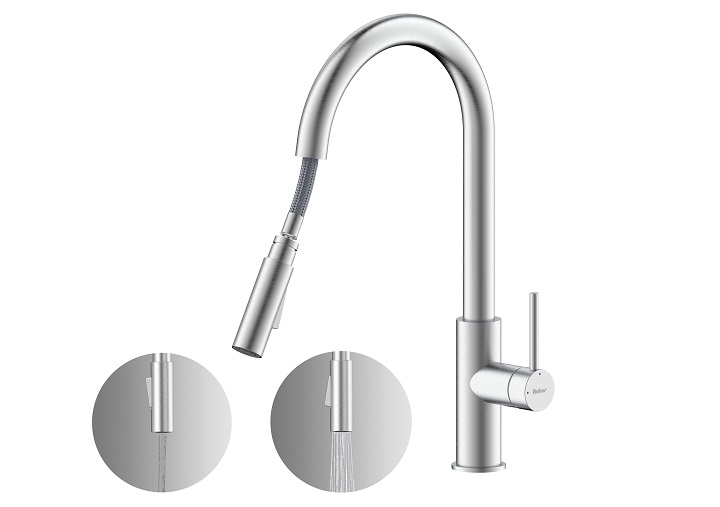 Der Name Namor® steht für ein Produktdesign mit ganzheitlichem Anspruch: Bedienkomfort begeistert die Verbraucher, Installationskomfort beflügelt die Monteure, und die Nachhaltigkeits-Attribute zielen auf einen sparsamen Ressourcen-Verbrauch. Mit ihrem großen Schwenkbereich sorgen die Namor® Einhebelmischer für viel Handlungsspielraum an der Spüle. Die drei unterschiedlichen Designkonzepte enthalten jeweils ein Modell mit herausziehbarer Schlauchbrause und zwei Wasserstrahlarten.